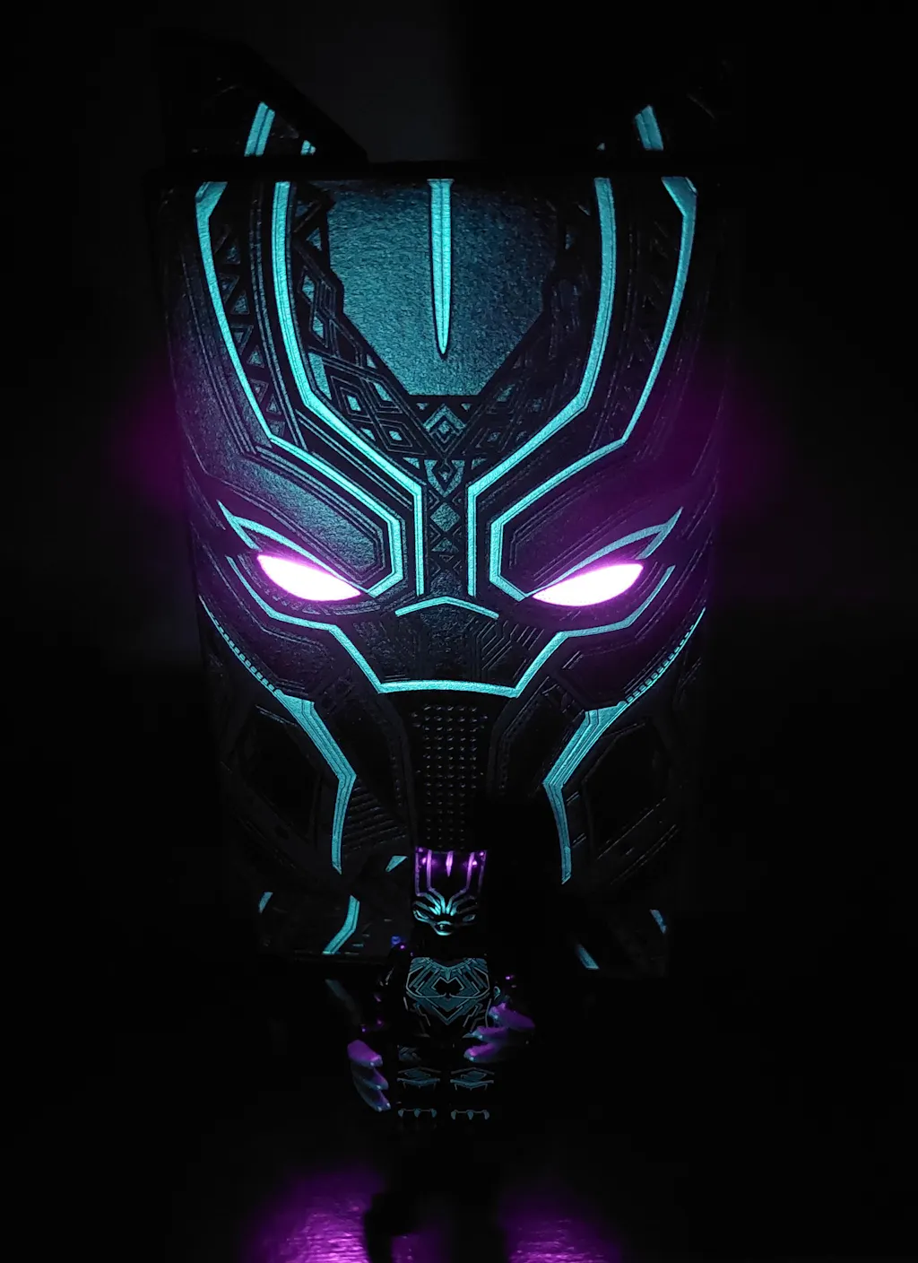 • The Center of the LED lights up in PURPLE showcasing Black Panther's Eyes.
